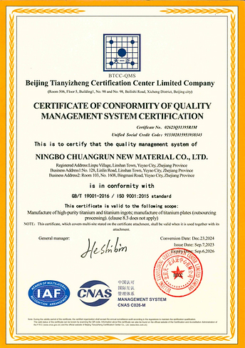 Ningbo Chuangrun New Materials Co., Ltd (CRNMC) was established in June 2012 and has 5 production bases across China. We are dedicated to material purification, melting, casting and processing of high purity titanium, nickel, copper, niobium, cobalt, etc., and provide a full range of electronic grade purity metals, like high purity electrolytic crystal, ingots, forged ingots, powder, plates, etc.